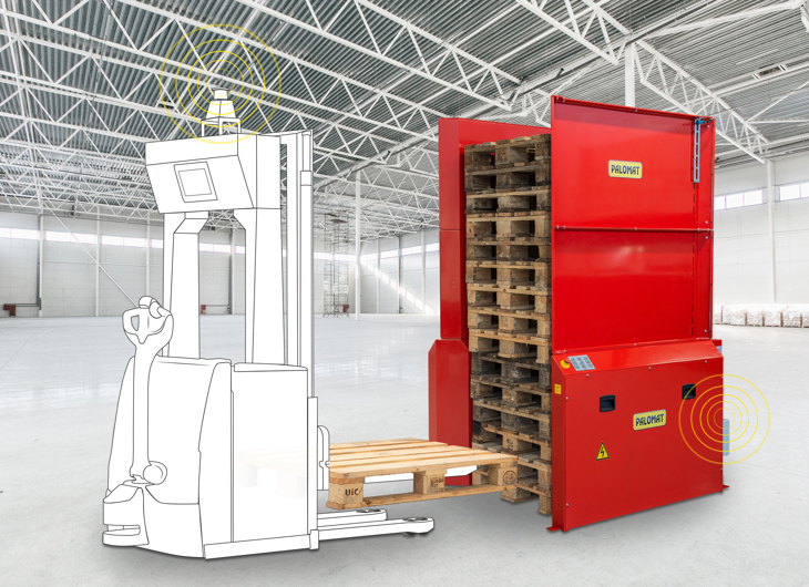 The PALOMAT® pallet magazine is a Danish product manufactured in Denmark since 1992. It automates pallet handling and streamlines workflow by stacking and destacking pallets, thereby sparing employees from heavy and manual lifting of pallets