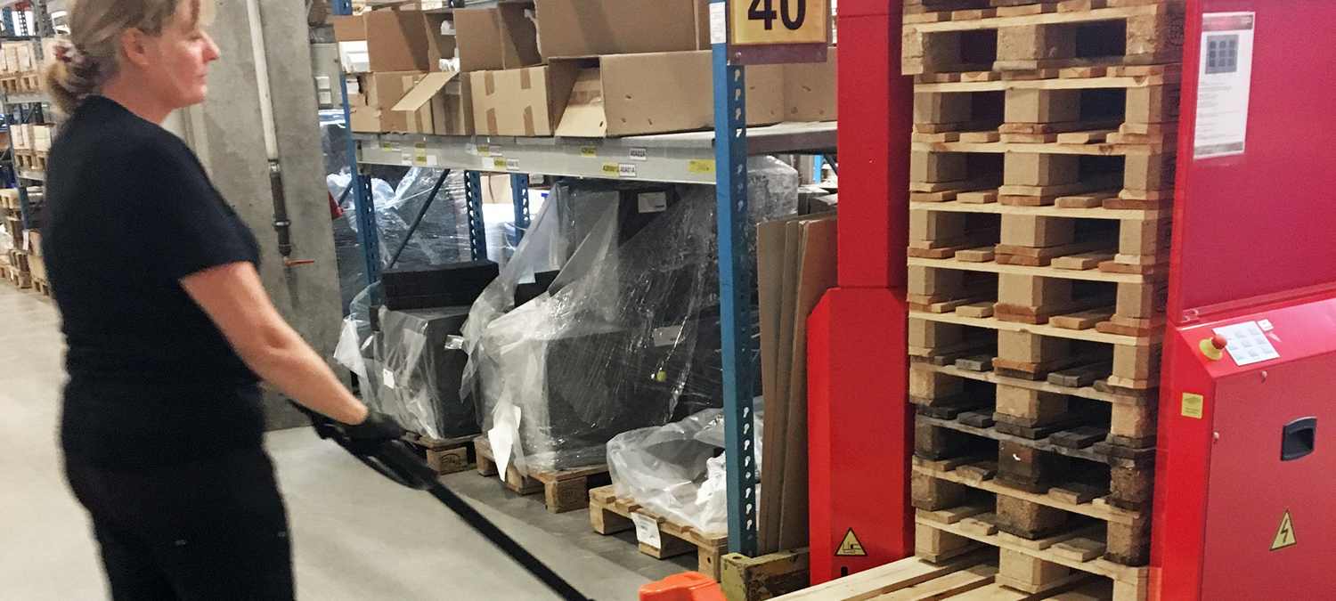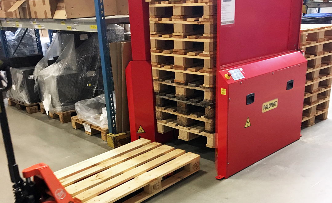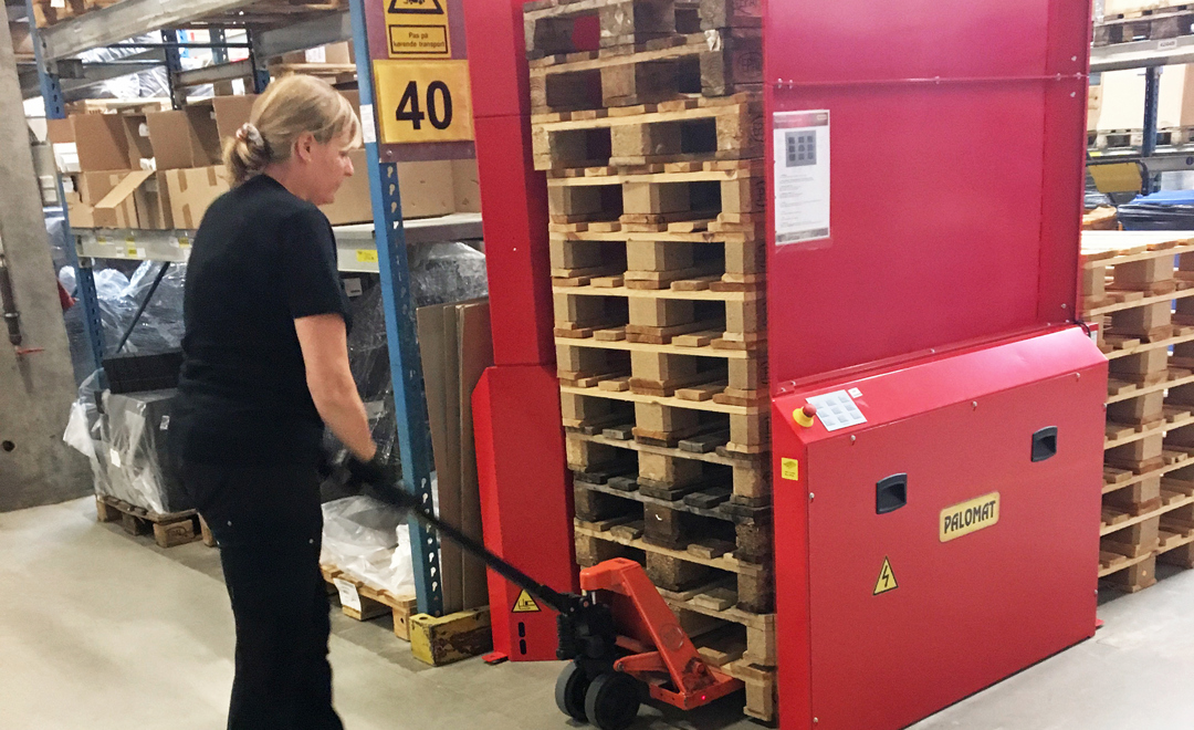 PALOMAT® Greenline relieves ABB's employees and has improved their working environment. The heavy manual pallet lifts are eliminated, and PALOMAT has provided more space and order in production. Only one employee is needed to handle the pallets, freeing up time throughout the production process.