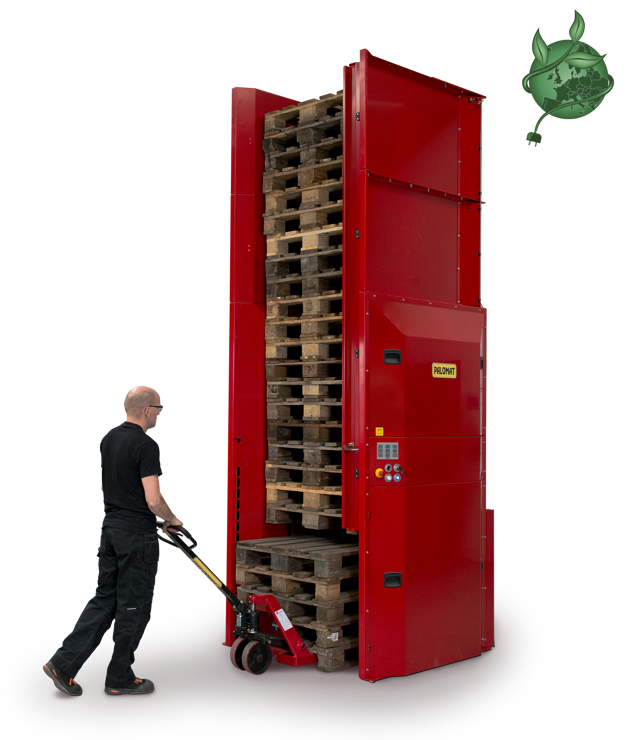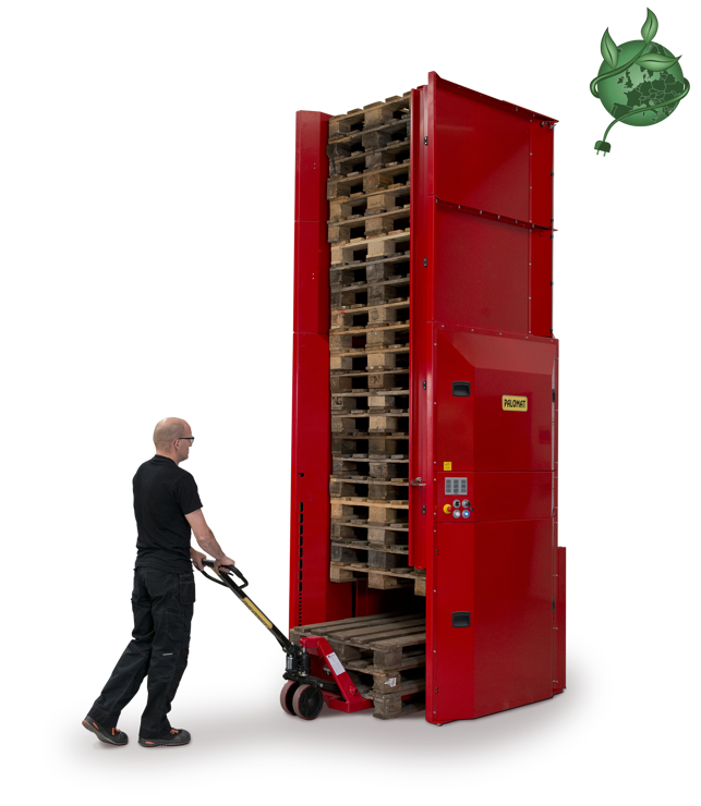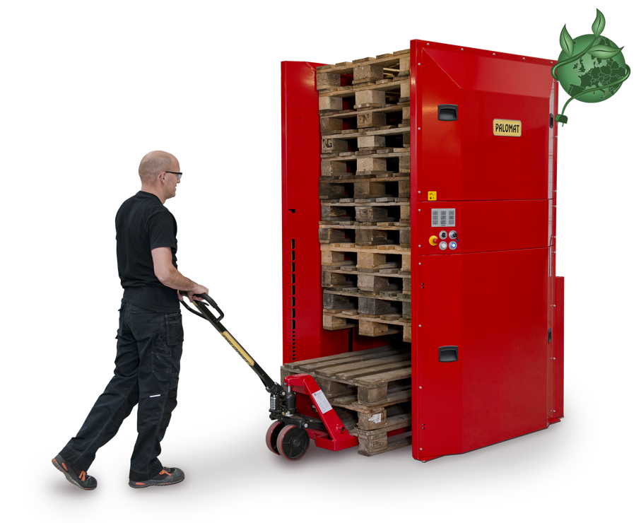 - The machine automatically determines whether to stack or destack. PALOMAT® 5 can handle 15 to 25 pallets at a time