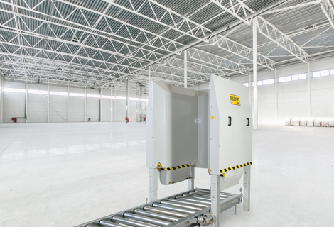 The machine can handle all 4-way pallets made of wood, plastic, and metal regardless of their dimensions