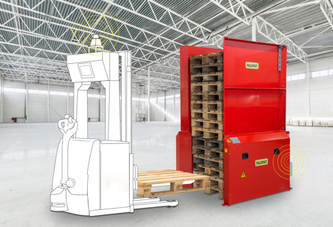 PALOMAT® 5 includes an integrated maximum indicator for 15 or 25 pallets. Once 15/25 pallets are loaded, it automatically destacks the entire stack
