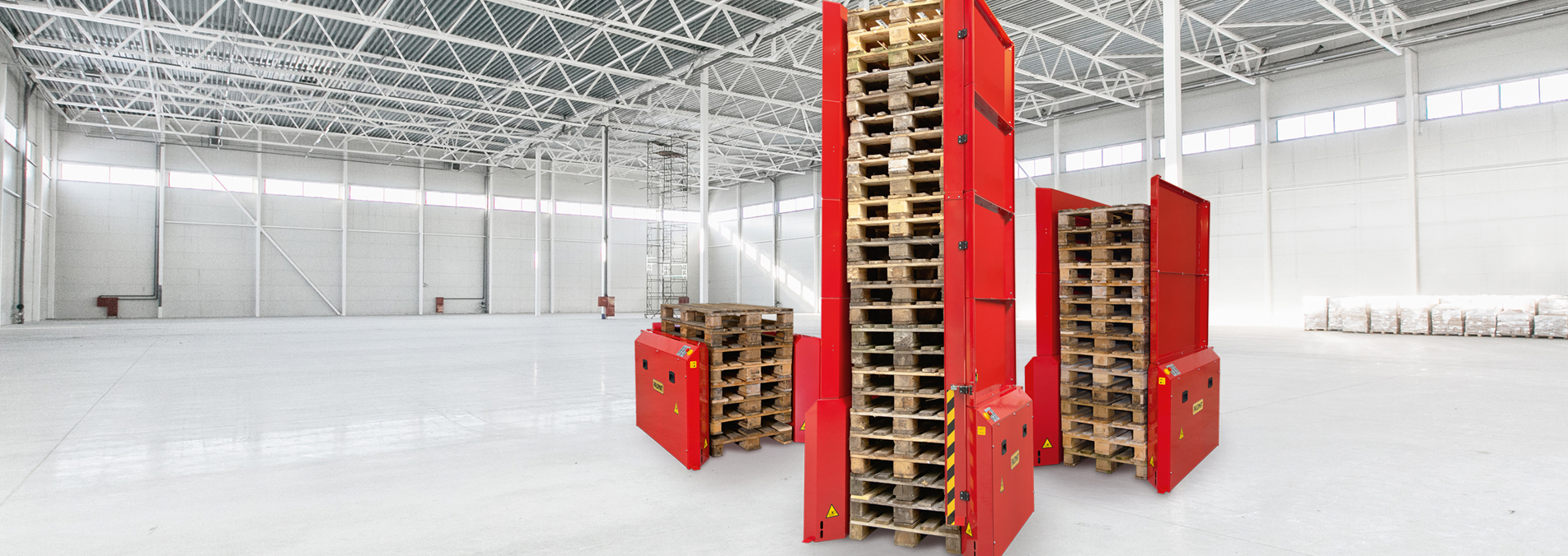 PALOMAT® can be integrated as a natural part of, for example, a production facility, a warehouse, a packaging department, or a store - anywhere in a company where there is a need to stack or destack empty pallets at floor level.